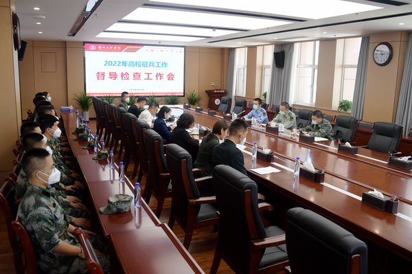 9月14日下午,2022年高校征兵工作督导检查工作会在Beat365举行。兰州征兵办公室主任、兰州警备区副司令员董高,城关区征兵办公室主任、城关区人武部部长张明春,兰州警备区参谋胡文波,党委委员、副校长刘畅出席,人民武装部、党委学生工作部工作人员,退伍大学生代表20余人参加会议。会议由人民武装部、党委学生工作部部长孙亮主持。