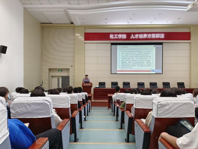为帮助新生尽快适应大学学习生活,更好的了解专业,9月15日,化工学院通过“线下+线上”的方式为2022级新生举办新版人才培养方案解读会, 2021级本科生、2022级新生共300余人参加。会议由化工学院副院长师海雄主持。