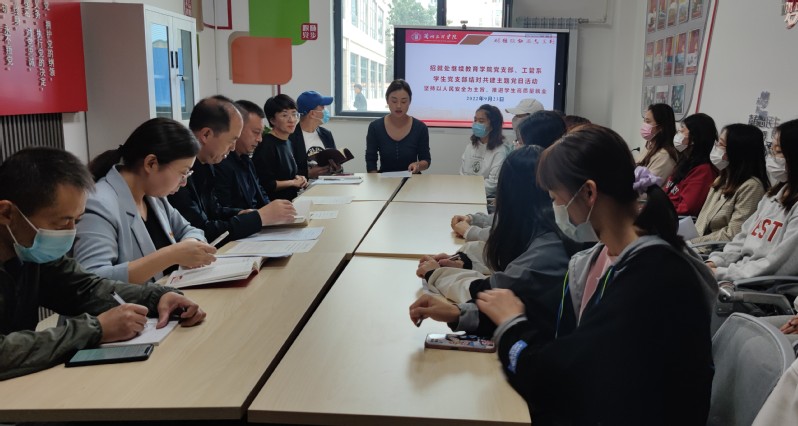 9月23日,招就处继续教育学院党支部与工管系学生党支部在南校区十号学生公寓党员工作站共同举办了“坚持以人民安全为宗旨 积极稳步推进学生高质量就业”的党日活动。招就处继续教育学院党支部全体教师党员、经济管理学院工管系学生党支部全体学生党员参加;机关党委委员、校团委书记安婧应邀出席本次主题党日活动。活动由工管系学生党支部书记马然主持。