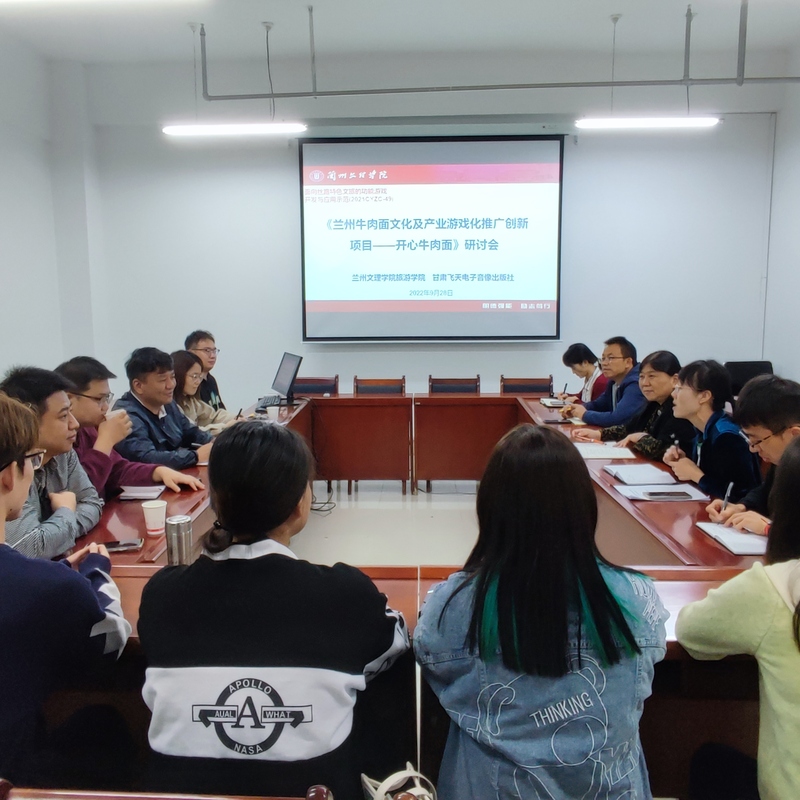 会议开始,项目负责人旅游学院院长高亚芳教授向甘肃飞天电子音像出版社总经理孙康一行介绍了2021年省教育厅产业支撑项目的研究意义、研究现状、研究内容及发展前景,接着从兰州牛肉面的发展历史、牛肉面文化产业游戏化、IP打造、特色服务及价值、盈利模式、目标客户群定位等方面阐述了《开心牛肉面》游戏子项目的创新特色。高亚芳在发言中表示甘肃飞天电子音像出版社是旅游学院非常重要的合作伙伴,非常期待以该子项目合作开发推广应用为契机,双方将来能就文化旅游资源转化与发展方面有更广泛和深入的合作。