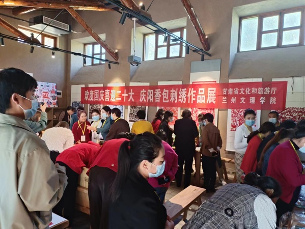 举办的“欢度国庆喜迎二十大 庆阳香包刺绣作品展”在国庆节来临之间非遗创承人献上了对祖国衷心的祝福。通过强基础、拓眼界、增学养的非遗培训,进一步提高了庆阳香包绣制非遗传承人及工坊从业者的文化自信和传统工艺产品的设计和制作水平,提高了非遗产品的市场竞争力,推动庆阳香包绣制非遗工坊及其非遗传承人在乡村振兴中实施人才振兴战略,从而在巩固脱贫攻坚成果与乡村振兴中增活力、出实效。
