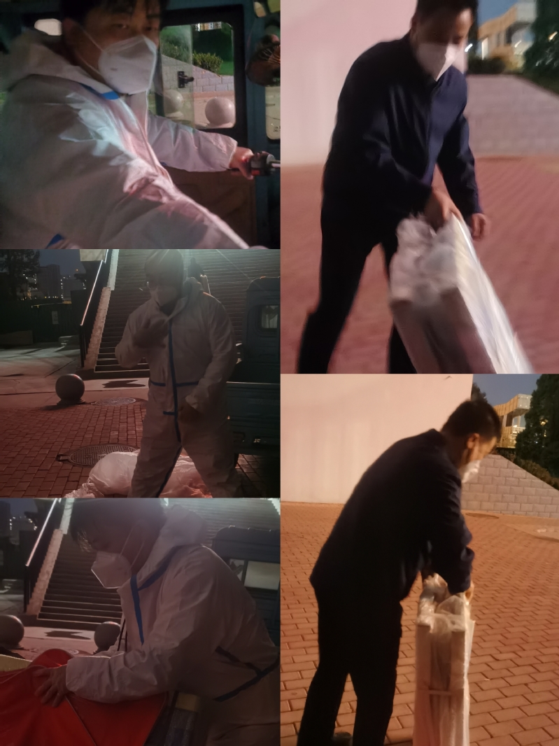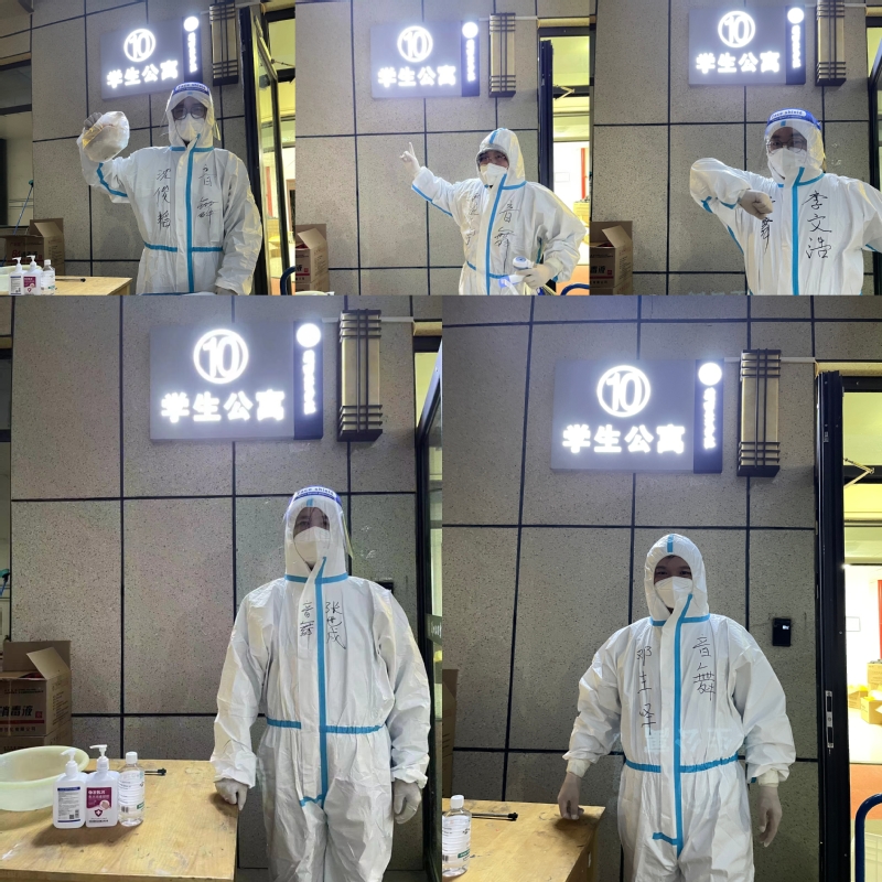 “把师生生活照顾好,情绪疏导好,早日重返校园,为恢复学校正常教学工作秩序做好保障”是校外隔离点点位长陈老师和邓老师的最大心愿。面对点位上的上百名学生,他们要负责日常食品、药品以及相关物资的供应和入住人员的健康监测。在没有电梯的楼上,他们身着防护服依靠肩扛手提,上下往返数次将师生一日三餐和生活必需品及时配送到位,一天下来衣服早已被汗水和消毒水湿透。当点位上的师生进入梦乡时,他们还在电脑前统计核对每位学生健康体征数据,分析研判核酸检测情况,规划第二天入点、出点人员安排。
