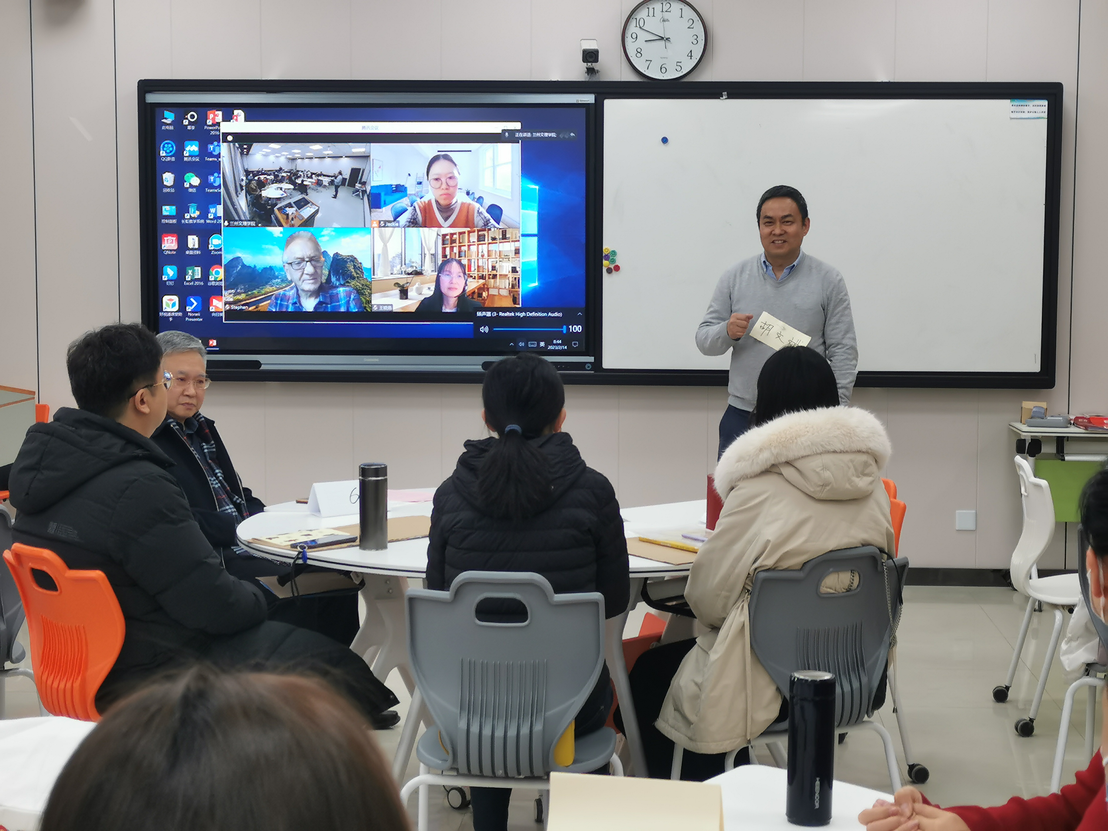 2月14日上午,世行贷款甘肃职教项目教师“积极教学法”培训班(第四期)在2-808教室举行开班仪式,副校长张焱,剑桥教育国际专家Stephen、胡文斌、王晓燕、陈嘉出席会议,第一期积极教学法培训优秀学员代表夏莹莹老师,教务处工作人员和全体培训教师参加会议,教务处长展惠英主持会议。