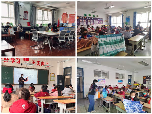 非遗染缬任课教师温晓晖在课堂上,从概念、工艺特色、历史传承、作品赏析等方面呈现了我国传统有趣的民间手工艺“染缬”。孩子们欣赏民间艺人和艺术设计专业学生的染缬作品后,惊叹不已,非常期待下节课的实践。助学师生团队将以每周一次的授课计划,持续开展非遗剪纸、染缬工艺进校园活动。