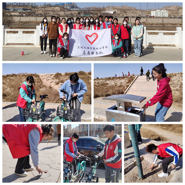 3月12日,化工学院志愿服务队来到南滨河路文理学院段,开展黄河步道清洁志愿服务活动。志愿者们认真捡拾游步道及树坑中的垃圾,清理路边杂草,规整摆放随意停放的共享单车,擦除车身灰尘和污渍,传递雁苑文明风尚。