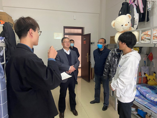 3月14日下午,党委副书记、校长郑伟强深入学生宿舍,走访调研同学们返校后的学习和生活情况,向他们致以亲切的关心和问候。