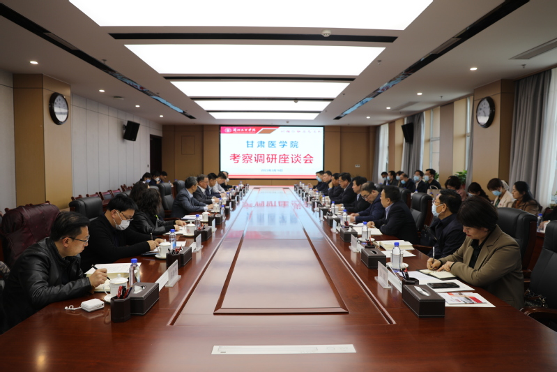 座谈会上,校长郑伟强对甘肃医学院考察调研组一行表示欢迎,并就学校坚持差异化发展、服务甘肃文化大省、旅游强省建设,着力打造“文化、旅游、传媒、艺术”办学特色和转型发展情况作了简要介绍。重点就本科教学工作合格评估的支撑材料、数据库填报、加强学科专业课程建设的经验做法作了交流。郑伟强指出,甘肃医学院立足甘肃,面向西北,主动对接卫生事业发展需求,突出服务地方职能,学科专业特色明显,为甘肃医疗卫生事业发展培养了大批高素质应用型人才,为服务全省医疗健康事业作出了积极贡献,希望两校能够深入交流、相互学习,共同促进教育事业高质量发展。