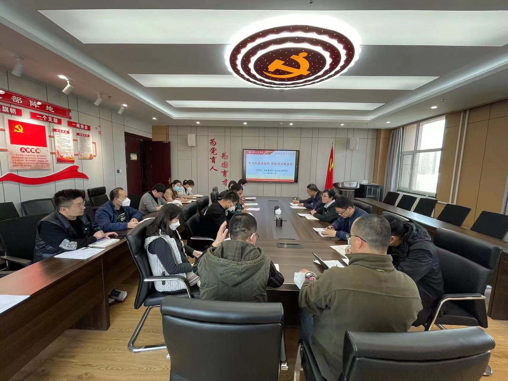 3月17日,教务处、教学质量监测与评估中心党支部组织开展“学习共建促提升 领航结对聚合力”主题党日活动,活动创新分为“领会精神促提升” “研讨交流促提升” “诵读经典促提升”三个模块。支部全体党员、社会体育学院学生党员代表、2号和8号学生公寓领航站党员代表参会,支部书记展惠英主持。
