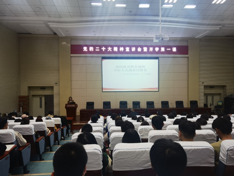 3月23日中午,副校长刘畅在综合楼学术报告厅为传媒工程学院、外语学院党员师生代表、入党积极分子、团学干部和学校党委学生工作部党员干部作党的二十大精神宣讲报告。报告会由外语学院党总支书记杨晓雯主持。