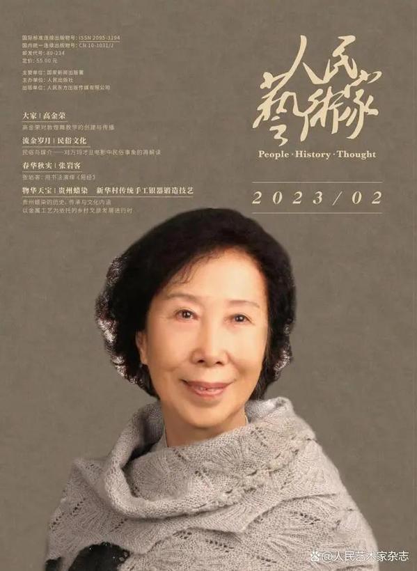 《人民艺术家》作为国家级艺术类杂志,权威性与专业性兼具、影响力深远,设有“大家”“流金岁月”“春华秋实”“物华天宝”等四个栏目。其中,“大家”主要选择20世纪以来为人民创作的艺术家,通过其创作故事以及其背后的创作精神来展现他们在艺术史上的地位和价值。高金荣教授成为了《人民艺术家》2023年第2期“大家”的主角,收录了高金荣小传、“建构‘敦煌舞派’的成功者”、 “高金荣对敦煌舞教学的创建与传播”、 “‘长绸如带系当风’ ——高金荣的舞蹈飞天梦”、“一个人的朝圣与坚守——记敦煌舞教学体系创始人高金荣先生”、“一生为一事 一舞一世界”、“吾师爱舞,吾爱吾师——我与高金荣先生的师生情缘”等多篇文章,主要由著名舞蹈编导家、理论家、国家级编导王曼力,北京舞蹈学院原副院长王伟,著名古典舞专家、中国艺术研究院舞蹈研究所教授金浩等我国舞蹈界“重量级”专家执笔撰写。