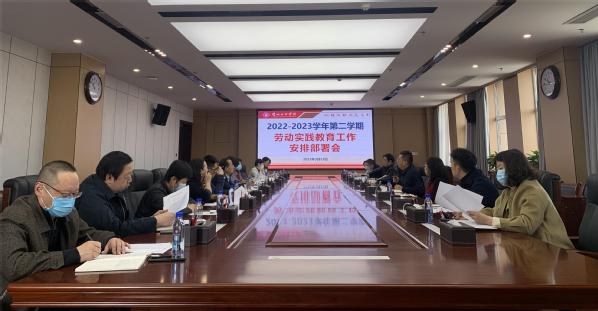 为进一步贯彻落实学校“三抓三促”工作要求,强调抓效能促发展,加强“五育并举”融合育人,促进学生德智体美劳全面发展。3月23日上午,Beat365在综合实训楼1218会议室召开2022-2023学年第二学期劳动实践教育工作安排部署会。党委学生工作部(处)部长孙亮主持会议,各二级学院分管学生工作副院长、后勤管理处相关负责人参会。