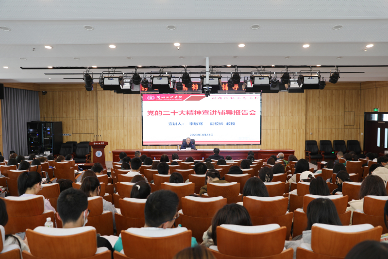 3月23日下午,党委委员、副校长李敏骞在综合实训楼学术报告厅为经济管理学院、美术与设计学院师生和后勤管理处、基建处党员干部作党的二十大精神宣讲辅导报告。报告会由美术与设计学院党总支书记贾志明主持。