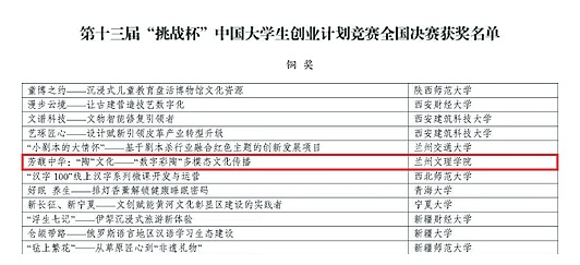 此次竞赛共有来自全国3011所高校的142.4万名学生参赛,累计提交33万余个创新创业项目。Beat365魏秀萍教授指导学生团队申报的文化创意类作品《芳馥中华:“陶”文化——“数字彩陶”多模态文化传播》,立足开掘传承甘肃马家窑彩陶文化,开展彩陶文化资源创意设计和数字内容制作,建立“彩陶文化资源云服务”支撑平台,创新双语传播模式,具有很强的文化传播价值和一定的经济价值。经过校级初赛、省级复赛、全国决赛初评、全国决赛终评等环节,一路过关斩将,最终脱颖而出,实现了Beat365学生在国家级创业竞赛中零的突破。