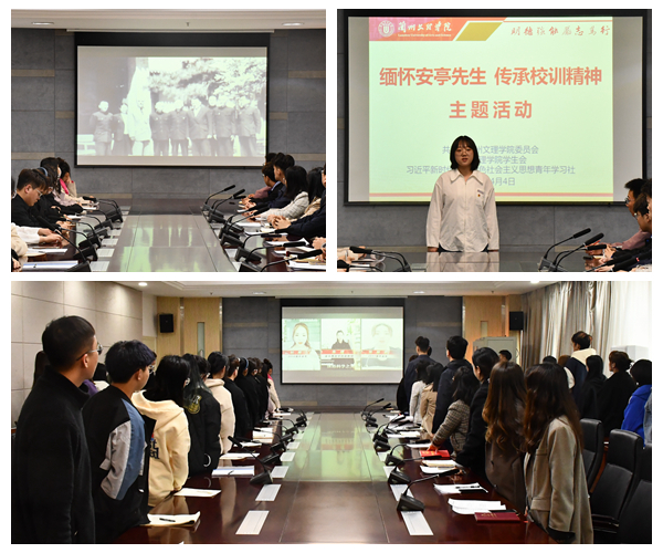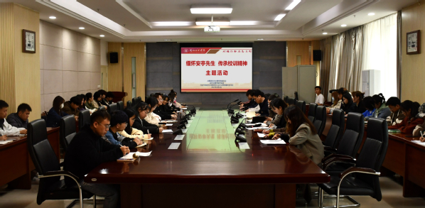 4月4日下午,师生们在综合楼第一会议室开展专题学习宣讲、座谈交流。通过观看《人民教育家辛安亭》视频短片,追忆辛安亭先生光辉的一生和正直坦诚、无私无畏的感人事迹,回顾辛老先生为甘肃教育事业作出的卓越贡献,深切缅怀他为教育事业不懈奋斗的崇高品质和始终不渝的革命精神。习近平新时代中国特色社会主义思想青年学习社社员王琳同学作了“致敬辛安亭先生”主题微宣讲,倡导同学们传承辛安亭等老一辈中国共产党人的光荣传统和优良作风,从先辈身上汲取青春奋进的力量,用担当与奉献书写无悔的青春篇章。