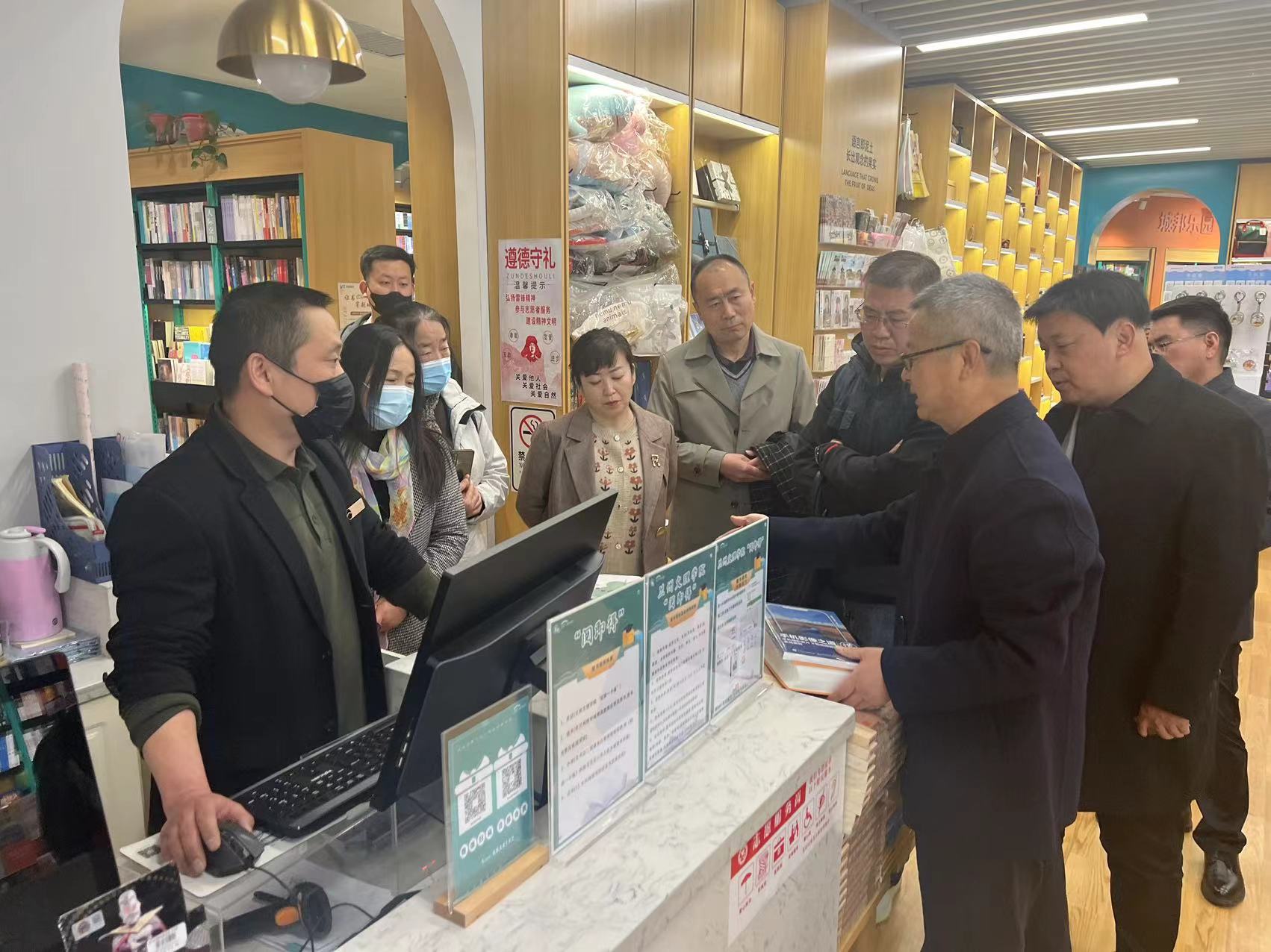 4月7日上午,为了探索纸质图书资源采购新模式,及时满足师生最新阅读需求,图书馆试行“悦即得” 图书现场采购模式。副校长王克太一行前往纸中城邦书店进行实操演练,对图书采购模式的改革进行现场指导。