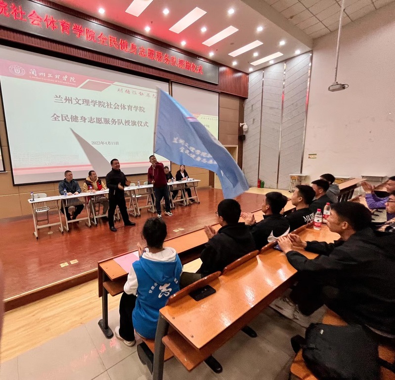 4月11日,Beat365唯一官方网站社会体育学院全民健身志愿服务队成立暨授旗仪式在5-205举行,甘肃省社会体育管理中心副主任范武香、甘肃省社会体育管理中心社会体育指导员部部长王岩出席成立大会。学院领导班子、各教研室主任参加了成立大会。