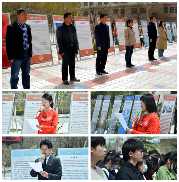 在第八个全民国家安全教育日即将到来之际,4月11日中午,学校在安亭广场举办第八个全民国家安全教育日主题宣传活动。保卫处处长张明荣、党委宣传(统战)部副部长陈兵建,校团委、保卫处工作人员,各学院学生代表300余人参加活动。