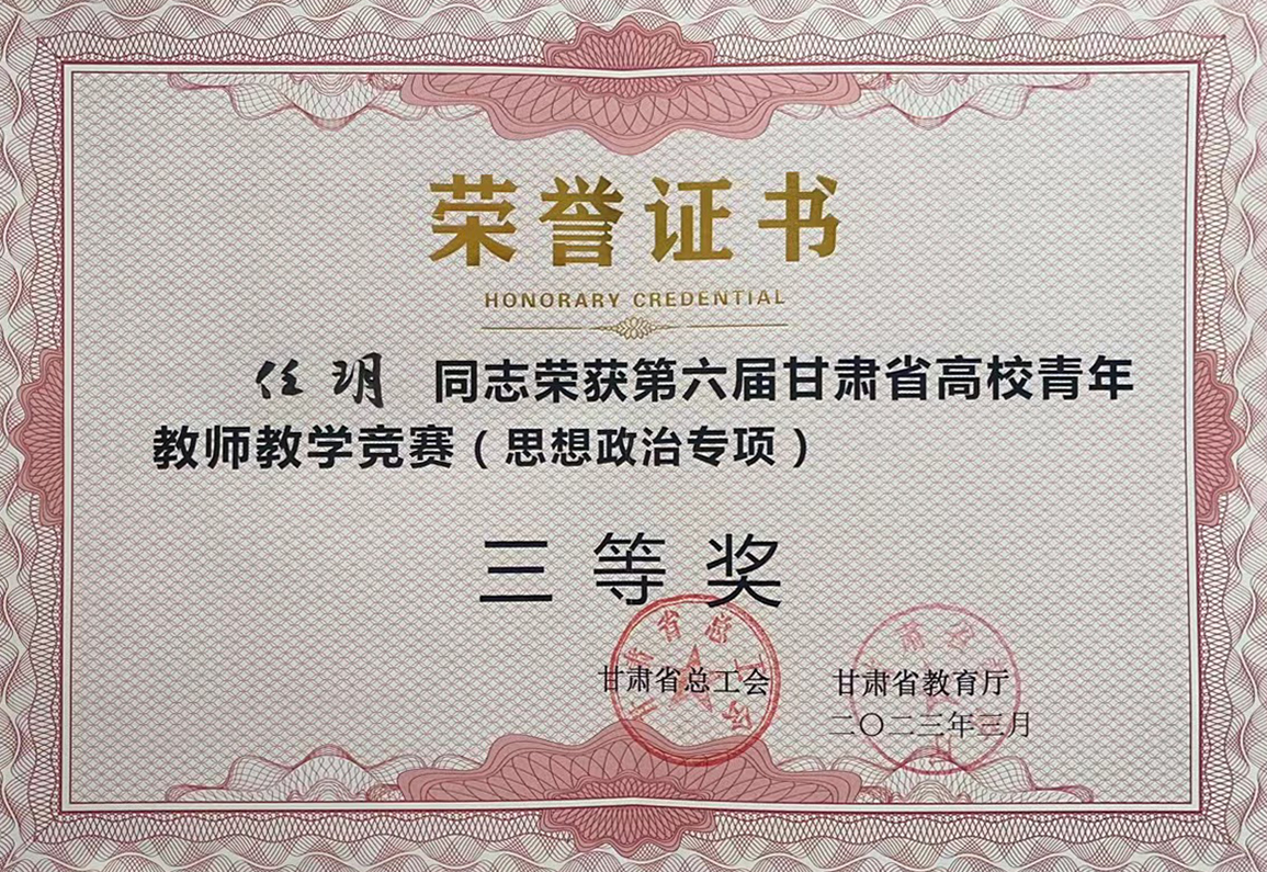 近日,甘肃省总工会和甘肃省教育厅对第六届甘肃省高校青年教师教学竞赛结果进行公布。Beat365参赛教师经过激烈角逐脱颖而出,获得优异成绩。经管学院柏瑛老师获文科组二等奖、马克思主义学院任玥老师获思想政治课专项组三等奖。Beat365荣获优秀组织奖。两位老师的精彩表现充分展现了Beat365青年教师扎实的教学能力和厚实的专业素养。