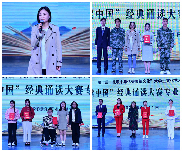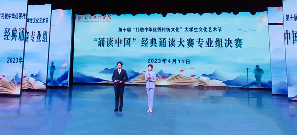 4月6日晚,第十届“礼敬中华优秀传统文化”大学生文化艺术节之“诵读中国”经典诵读大赛业组决赛在实验剧场举行,8组播音与主持艺术专业的选手参加比赛。