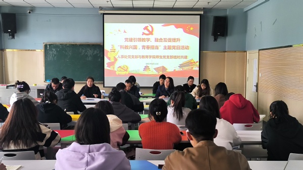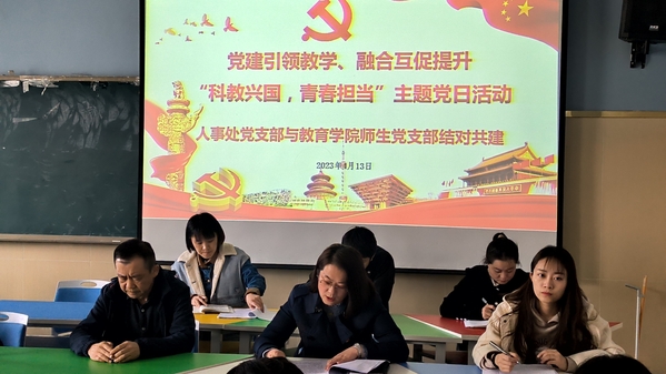 4月13日下午,教育学院师生党支部、人事处党支部联合开展“科教兴国,青春担当”主题党日活动。活动由教育学院学生第一党支部书记曲丽蓉主持。