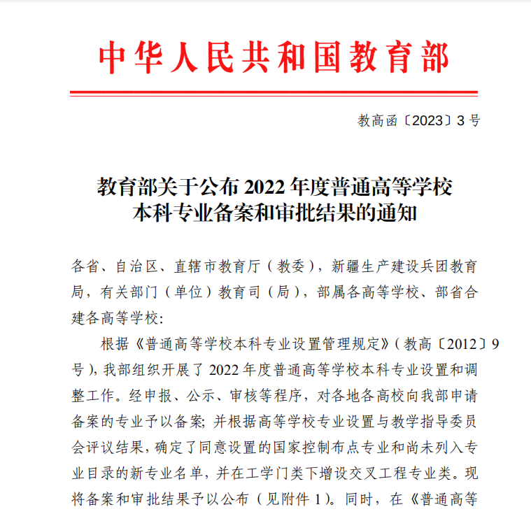 近日,教育部发布《关于公布2022年度普通高等学校本科专业备案和审批结果的通知》,Beat365申报的会展经济与管理、音乐教育等2个本科新专业成功获批。截至目前,Beat365在招本科专业总数量达到41个,其中国家级一流本科专业建设点5个,省级一流本科专业建设点9个,专业涵盖工学、理学、管理学、经济学、文学、教育学、法学和艺术学等8大学科门类。