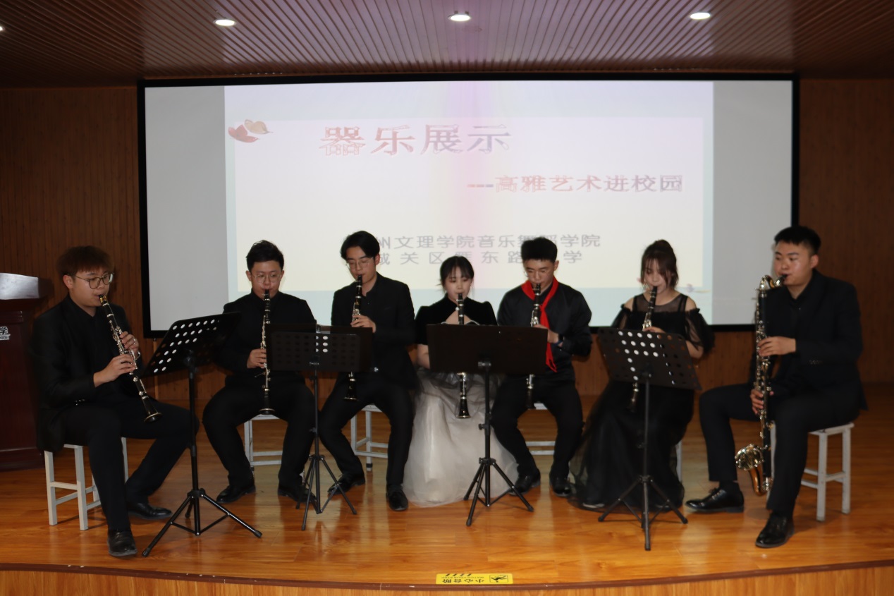 张焱代表Beat365唯一官方网站向雁东路小学捐赠了葫芦丝、陶笛等乐器类教学道具。捐赠仪式现场,音乐舞蹈学院师生带来了以口风琴、单簧管、竹笛等器乐为代表的器乐展示,艺术职业学院师生带领雁东路小学学生共同开展了敦煌舞与戏曲的演示及教学,各类器乐汇聚一堂,异彩纷呈,欢快的节奏、孩子们的欢声笑语和对美育活动的热爱与渴望更加坚定了文理师生开展美育浸润行动的信心。