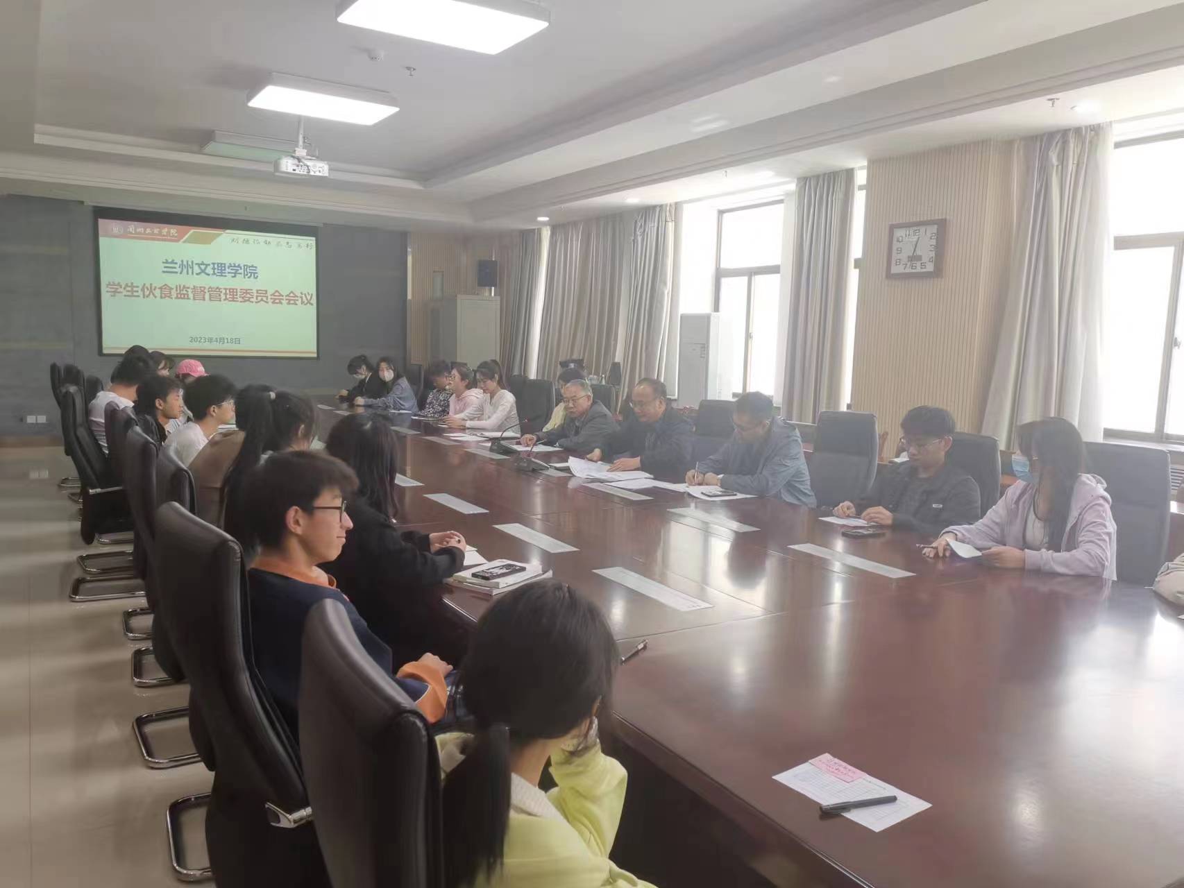 4月18日中午,学校召开学生伙食监督管理委员会会议。副校长李敏骞出席并讲话,学校纪委监察室、饮食管理科工作人员和学生伙管会委员20余人参加会议。