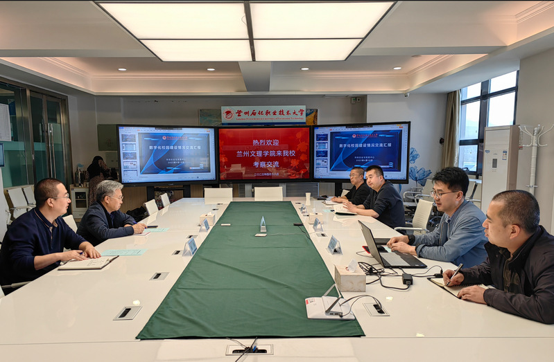 兰州石化职业技术大学副校长谢智星介绍了该校一校三地四区信息化建设思路。双方就网络安全防护、基础设施完善、业务系统建设、创新教学探索、数字校园未来工作思路等方面进行了深入交流。