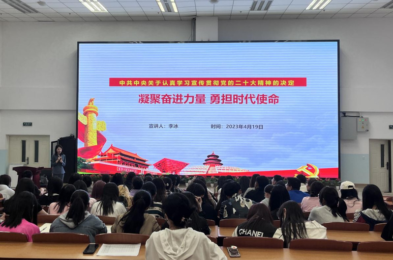 4月19日,旅游学院在5-401举行党的二十大精神宣讲第三讲,酒店管理专业教工党支部书记李冰做了《凝聚奋进力量勇担时代使命》的主题报告。全体学生正式党员、预备党员、入党积极分子参加。