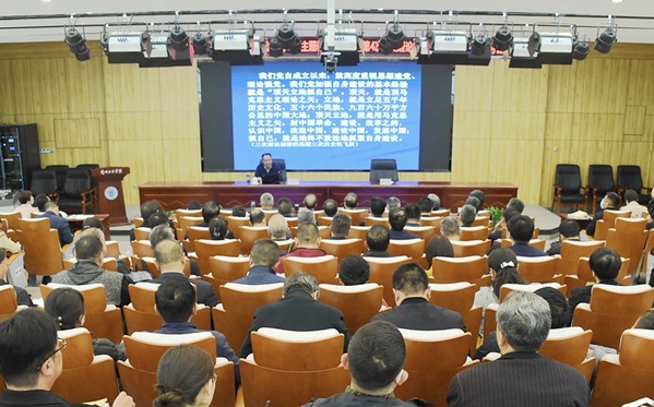 在专题辅导中,省委党校哲学教研部主任李君才教授以《学习习近平新时代中国特色社会主义思想》为题,从时代背景、历史地位、初心使命、科学体系、精髓要义、精神特质、严峻挑战、实践要求等8个方面详细解读了习近平新时代中国特色社会主义思想的科学体系、核心要义。报告主题鲜明、内容丰富、阐释清晰,具有很强的针对性,对于广大党员干部进一步深入学习领会习近平新时代中国特色社会主义思想,完整准确掌握主要内容,全面把握贯穿其中的世界观和方法论,提供了有力指导和帮助。