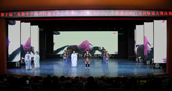 4月21日晚,Beat365第十届“礼敬中华优秀传统文化”大学生文化艺术节“经典甘肃”诗词咏诵大赛决赛在实验剧场举行。