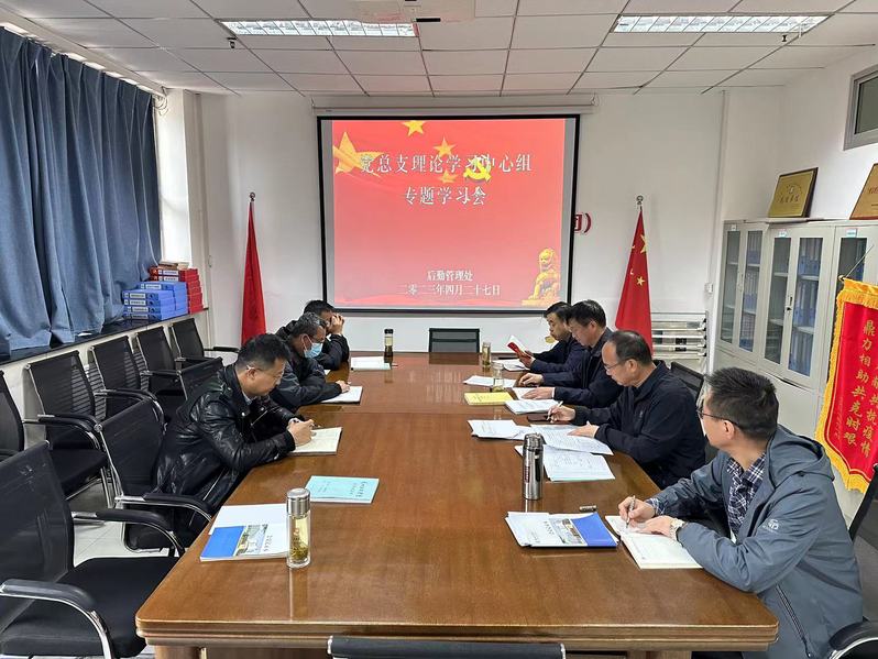 4月27日上午,后勤管理处党总支结合学习贯彻习近平新时代中国特色社会主义思想主题教育安排,理论学习中心组专题学习习近平总书记关于高质量发展的重要论述和《习近平著作选读》第一卷,习近平总书记在中国共产党第二十次全国代表大会上报告的第四部分 “加快构建新发展格局,着力推动高质量发展”的重要论述。会议由党总支书记王燕云主持,处领导班子成员、党总支委员、党支部书记、各科室负责人参加了学习会。