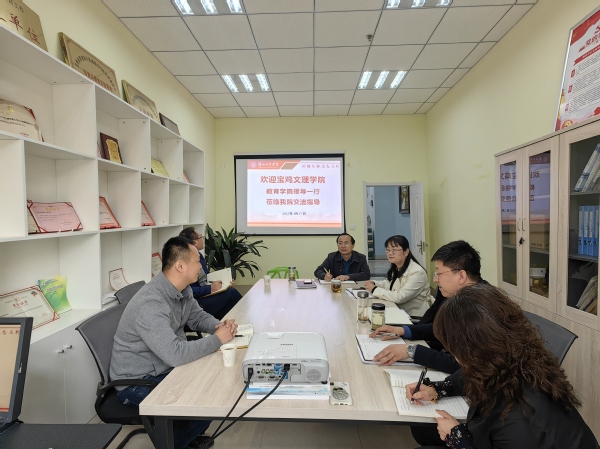 为学习兄弟院校先进工作经验,提升学院育人工作成效,4月27日下午,教育学院领导班子成员与来访的宝鸡文理学院教育学院副院长赵亮、教育技术系主任高轶俊一行开展工作交流。
