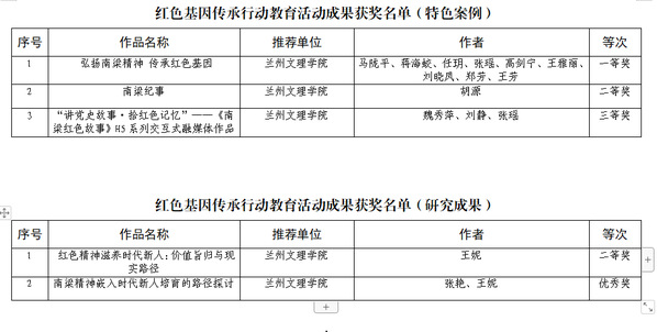 学校自2021年5月入选甘肃省“首批红色基因传承示范校”以来,始终坚持以习近平新时代中国特色社会主义思想为指导,深入贯彻落实习近平总书记“利用好红色资源、传承好红色基因、弘扬好红色文化”的重要指示精神,把传承红色基因作为全面贯彻党的教育方针、落实立德树人根本任务的重要内容,作为加强和改进学校思想政治教育工作的重要载体,作为培育和践行社会主义核心价值观的重要抓手,深入开展“红色基因传承示范行动”,聚焦“南梁精神”打造“思政品牌”;用好“八种载体”,深化育人实效;用活专业资源,探索“思政+专业+实践”的红色基因传承新模式。为青年大学生追溯信仰之源,补足精神之钙,培根铸魂、启智润心。