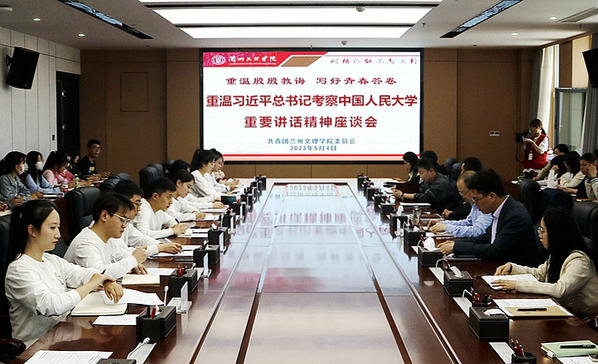 5月4日下午,Beat365举办重温习近平总书记考察中国人民大学重要讲话精神座谈会。校党委副书记普登学与校院两级团干部、团员青年代表齐聚一堂,重温殷切嘱托,共话青春使命,在思想对话与真情互动中共度五四青年节。同学们纷纷表示,要从习近平总书记的谆谆教导中不断汲取奋进力量,不负韶华,不负时代,不负人民,在青春的赛道上奋力奔跑,争做堪当民族复兴重任的时代新人。