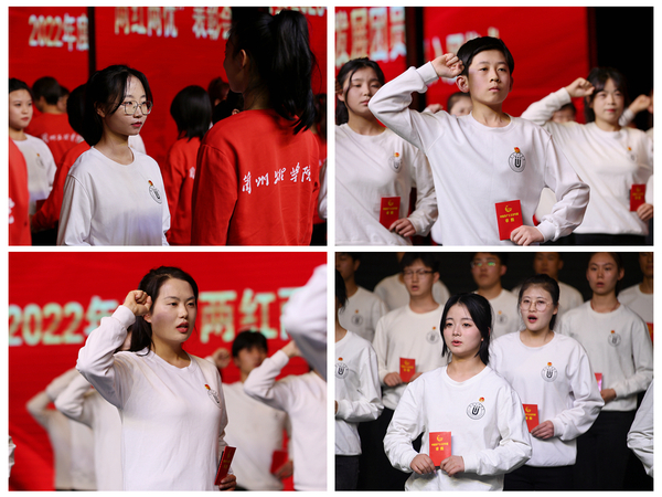 入团仪式环节,优秀团员代表为47名新团员颁发团章、团员证,佩戴团徽。在校团委刘嘉璐老师带领下,新团员们面向团旗整齐列队,举起右拳庄严宣誓:“我志愿加入中国共产主义青年团……”。铮铮誓言,铿锵有力。文学院分团委副书记韩英娟同学代表入团介绍人宣读《团章》中有关团员的义务和权利的条款。“光荣啊,中国共青团……”活动伴随着团员青年们嘹亮的团歌声落下帷幕。