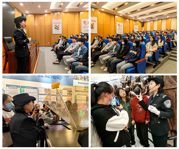 陈警官向同学们介绍了中国毒品的发展史、禁毒史,让大家了解到,从虎门销烟的鸦片,到现在的精神抑制剂、致幻剂,各种各样的毒品层出不穷,带来的危害愈加强烈。借助各种吸毒工具与毒品模型,将吸毒前后的各人体器官进行对比,并通过尝试虚拟现实VR毒驾体验机,同学们全方位地了解了毒品对生命安全以及对家庭、社会的巨大危害。