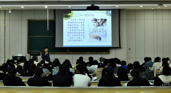 朱永明老师由“何为写作”讲起,以萨特的《小说写作》引入,阐明写作的价值和意义,激发同学们的写作热情。通过对《开始写吧!非虚构文学创作》这本书的讲解,让同学们了解了非虚构文学创意写作方方面面的崭新理念。以非虚构文学的发展为主线,围绕“如何理解非虚构”“如何写好非虚构作品”“非虚构兴起的历史”“非虚构的类型及其代表作品”等四个方面,对古今中外的经典文学作品《审美学教程》《诗学》《兄弟记》《天火》《黄河源笔记》《寂静的春天》《沙乡年鉴》《月光下的银匠》《遥远的村庄》等以及绘画作品《蒙娜丽莎》做了系统梳理和解读,并鼓励同学们关注和结合乡土风情和非物质文化遗产,大胆写作、践行写作、创意写作、真实写作。