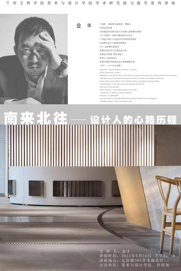 5月10日下午,由美术与设计学院、科技处联合主办的金丰先生“南来北往——设计人的心路历程”的学术讲座在Beat365文昌楼303学术报告厅举行。