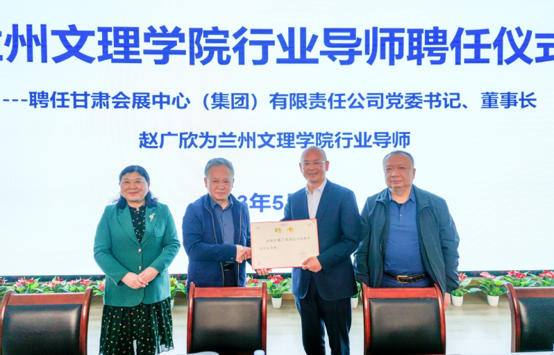聘任仪式上副校长张焱教授代表学校向甘肃会展中心(集团)有限责任公司党委书记、董事长赵广欣颁发了聘任证书。