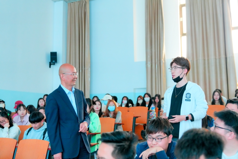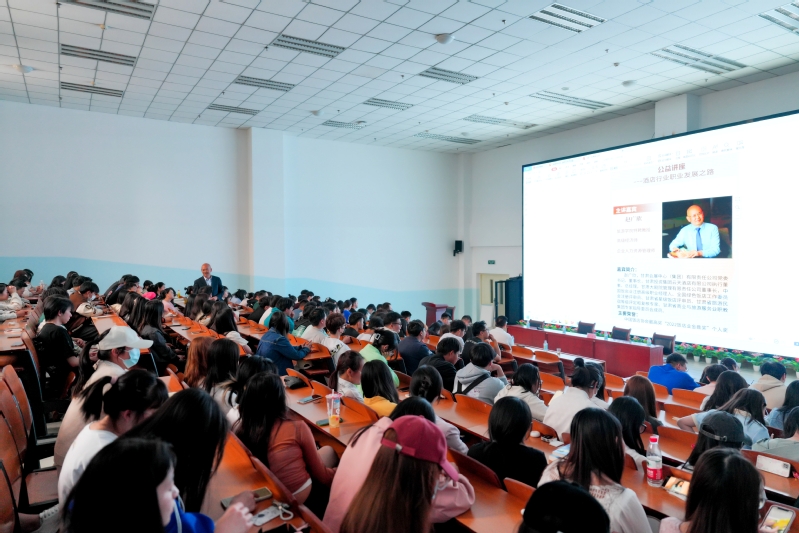 仪式结束后,赵广欣及同行人员甘肃投资集团云天酒店有限公司业主办主任、兰州皇冠假日酒店业主代表王轩文,甘肃会展中心(集团)有限责任公司团委书记、人力资源部副主任王丽晶,兰州皇冠假日酒店房务副总监魏立祥分别从个人职业发展经历、酒店行业发展前景以及酒店从业者职业生涯规划等方面进行了精彩的分享。赵广欣从自身学业发展、职业历程发展的生动案例中,激励学生一步一个脚印好好学习、打好基础,建议学生在选择实习和就业时结合自身实际。讲座最后,赵广欣与学生热烈互动,答疑解惑并赠书。此次讲座让学生进一步了解了酒店行业职业发展路径,对提高学生在实习和就业过程中的积极性、主动性和创造性,提前做好职业规划等方面具有积极意义。