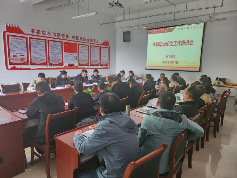 5月11日下午,化工学院召开了毕业论文工作推进会,学院党总支书记贺志军、副院长师海雄、王尹杉及全体教职工参会,会议由贺志军主持。
