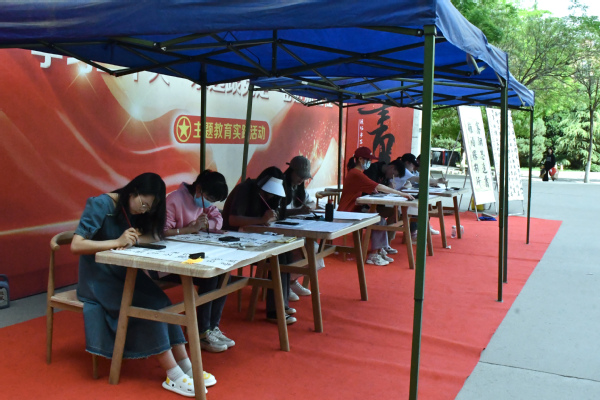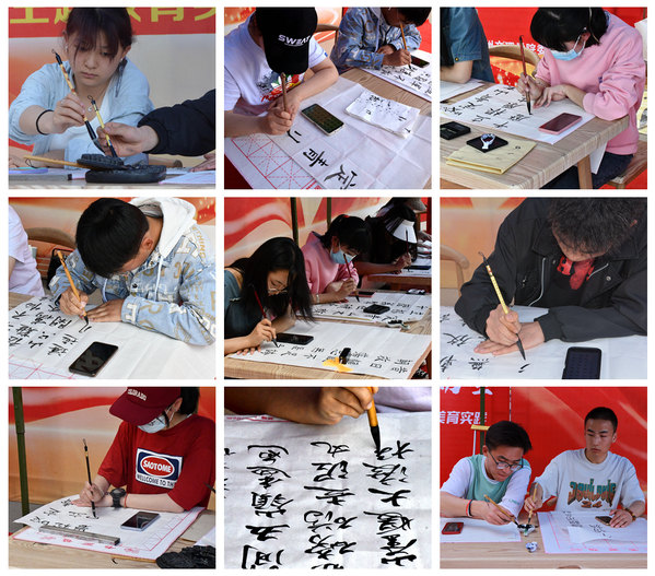 横竖撇捺宽天地,笔墨纸砚书乾坤。5月14日下午,“以美育人• 向美而生”第二届学生社团美育实践系列活动——“学习二十大,翰墨颂中华”现场软笔书写比赛在北校区思源楼小广场举行。
