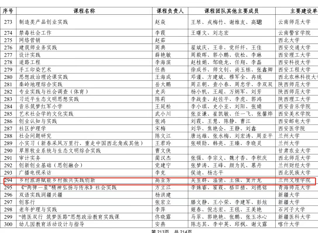 近日,教育部公示了第二批国家级一流本科课程认定结果,拟认定5751门课程为第二批国家级一流本科课程,Beat3653门课程入选,高亚芳教授主持的《乡村旅游赋能乡村振兴实践创新》被评为国家级社会实践一流本科课程,梁宝毓教授主持的《编辑出版实务》被评为国家级线下一流本科课程,万婷副教授主持的《甘肃民间美术》被评为国家级线上一流本科课程。这是继获批1门首批国家级一流本科课程后,学校在课程建设成果方面又一重大突破,至此,Beat365共获批国家一流本科课程4门。