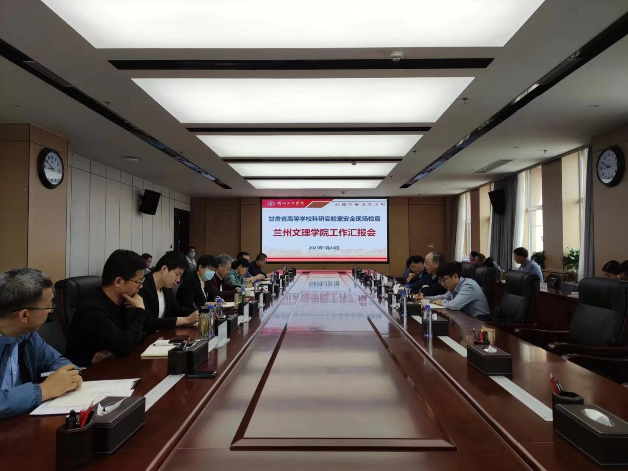 5月24日,省教育厅高校实验室安全检查专家组一行三人来Beat365进行实验室安全现场检查。本次检查工作汇报会在文昌楼12楼会议室召开,党委(学校)办公室、教务处、科技处、保卫处、国资处、信息中心、基建处负责人和各二级学院院长参加,会议由副校长张焱主持。