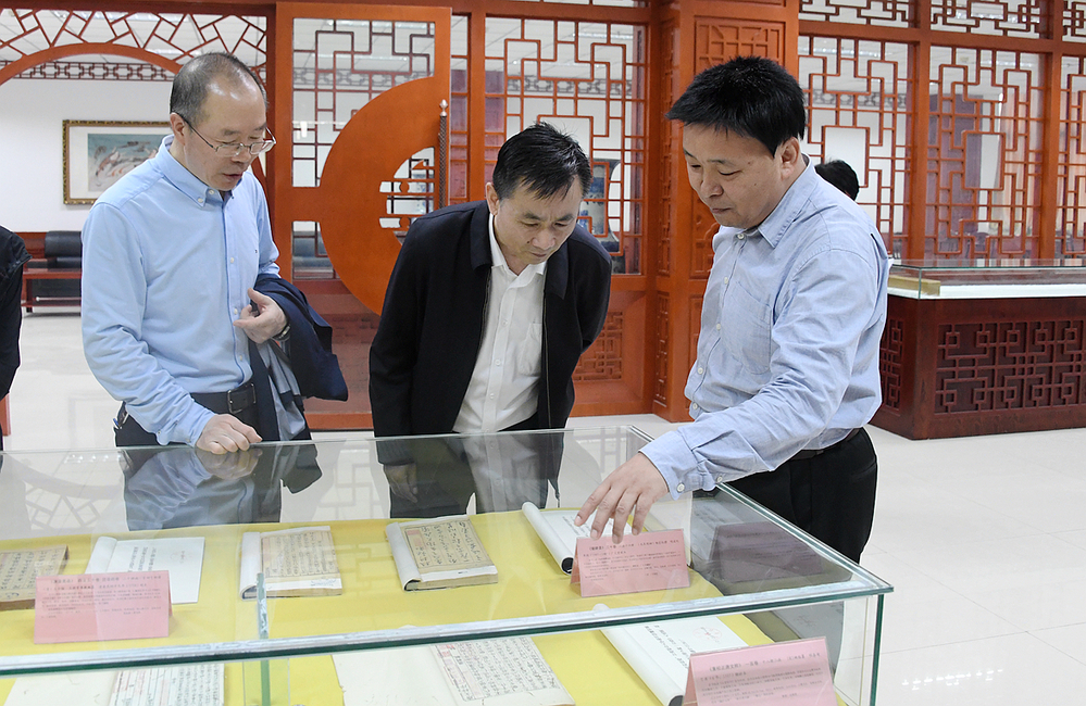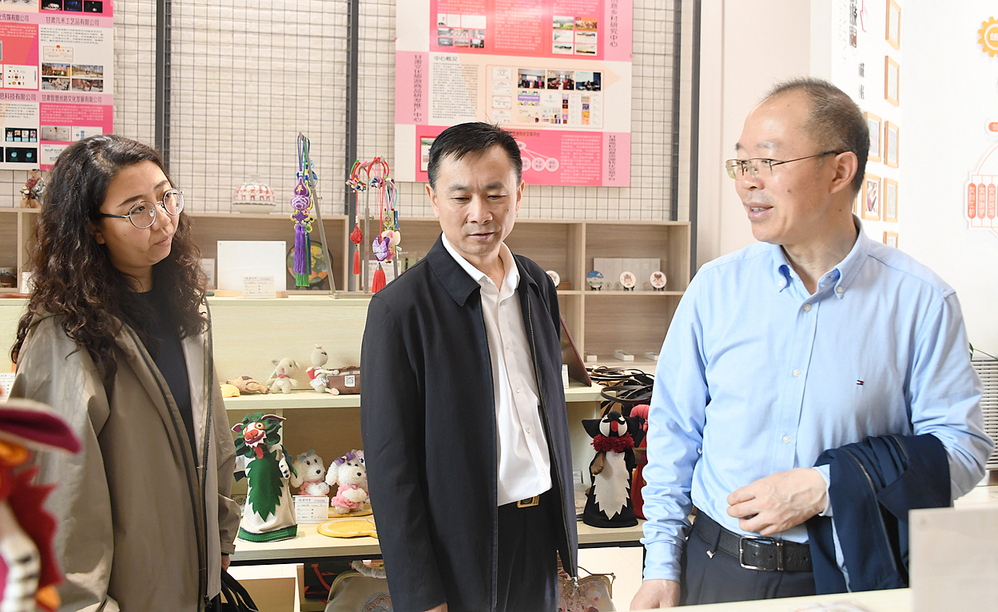 考察调研组先后参观了学校校史馆、敦煌文献资源中心、古籍文献室、文化创意科技园、雁苑微林“众创空间”,观看了甘肃非遗图片展和学校宣传片。