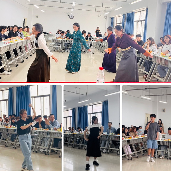 座谈会上裕固族、回族、维吾尔族、柯尔克孜族、傈僳族和藏族同学向大家分享了自己民族历史渊源,文化生活、特色饮食和民族风俗。藏族同学和维吾尔族同学还分别表演了精彩的民族舞蹈,使参会的师生感受到了我国多民族丰富多彩的文化色彩,进一步增强了中华民族共同体的意识。