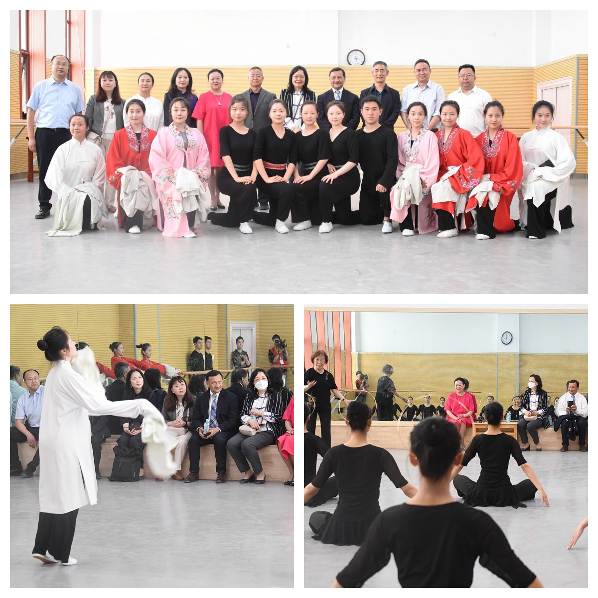 随后,专家组一行参观了美术与设计学院装饰艺术实训中心的陶艺工作室、漆艺工作室、纤维工作及作品展室。在装饰艺术实训中心,专家们兴致勃勃的观摩学生们的实践操作过程,对自己感兴趣的作品进行细致的询问,老师和同学们一一作了回答。专家组一行纷纷对工作室项目化教学模式予以了充分肯定。同时专家组也观摩了艺术职业学院戏曲表演的剧目《劈棺惊梦》教学演示,并现场与教师、学生进行了交流讨论。