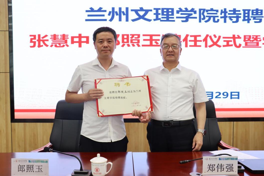 聘任仪式上,叶淑媛介绍了张慧中、郎照玉书法艺术创作经历,校长郑伟强为张慧中、郎照玉颁发特聘教授聘书。