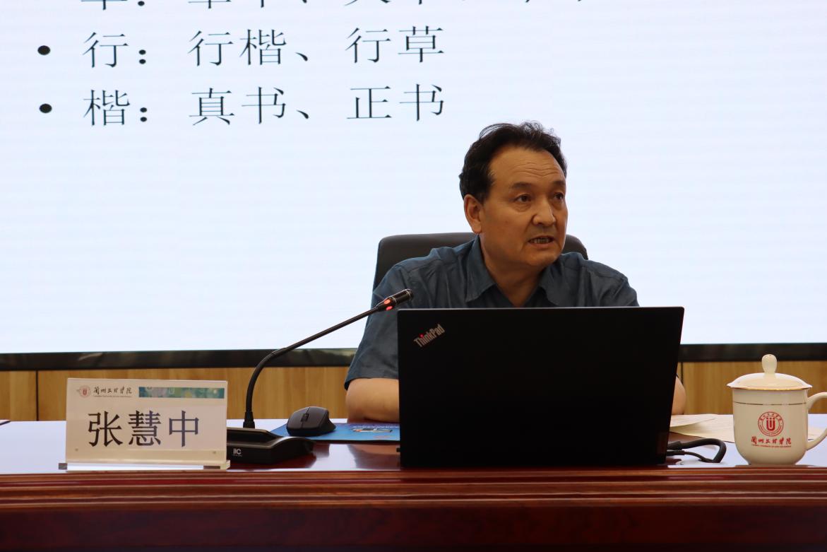随后张慧中教授作《汉字书法流变与国学传承》的讲座,郎照玉教授作《中国书法的发展及代表作品赏析》的讲座。